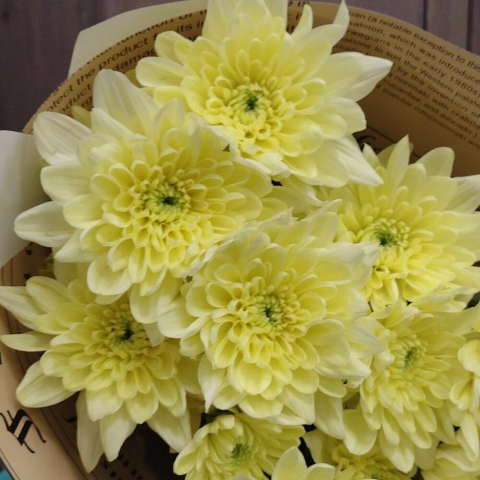 Хризантема кустовая – 3 шт.Дизайнерская упаковка – 1 шт.