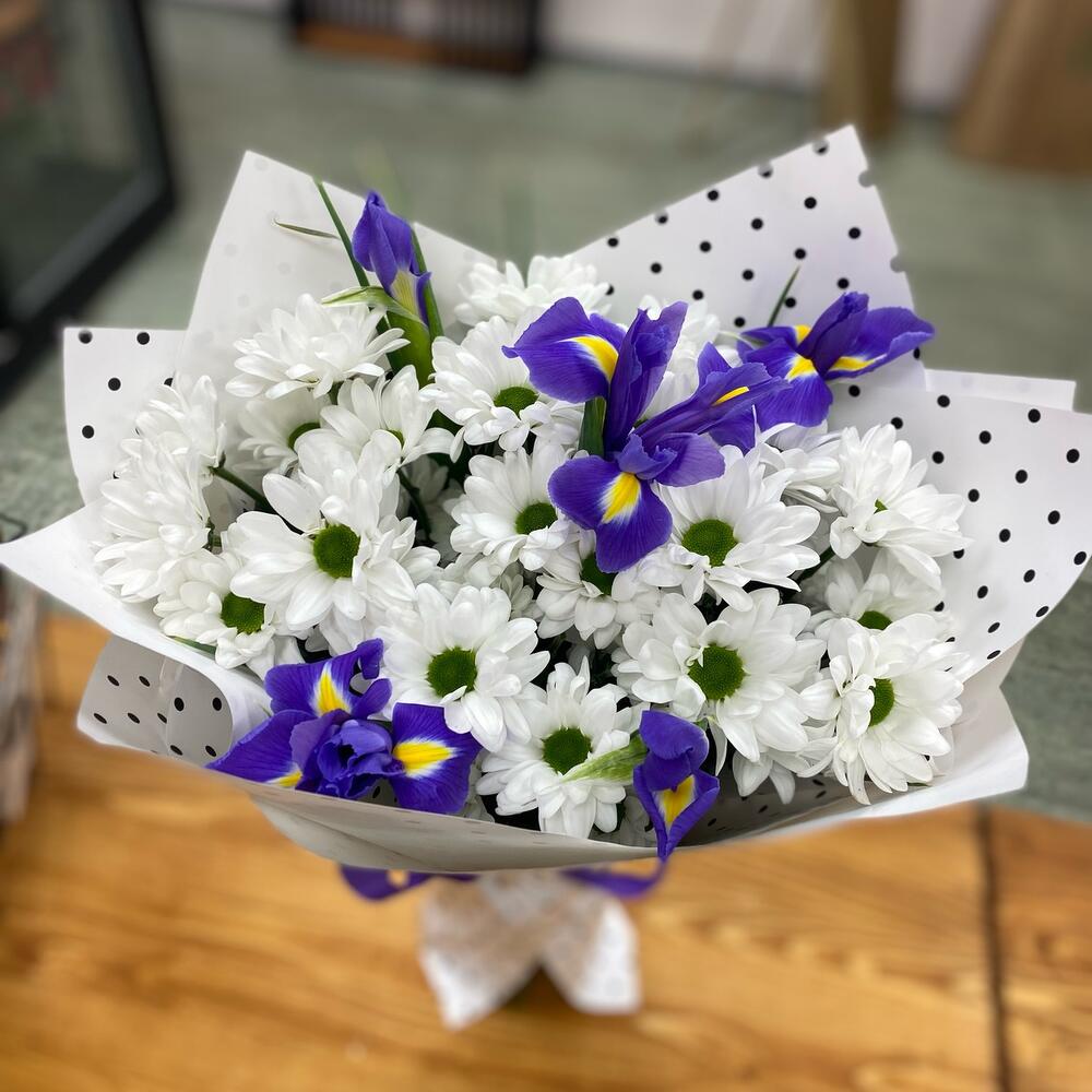 Букет из хризантем и ирисов