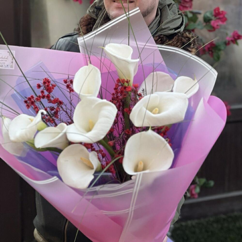 Роскошный букет из крупных белоснежных калл порадует ваших близких по поводу и без