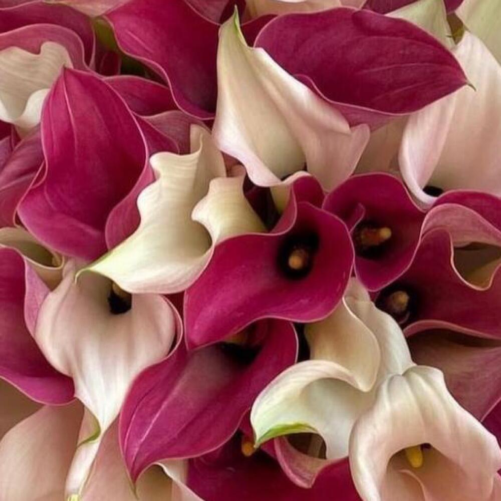 Калла фиолетовая – 20 шт.Калла белая – 19 шт.Упаковка дизайнерская – 2 шт.Лента атласная – 2 шт.Открыточка с вашими пожеланиями – 1 шт.хорошее настроение – 100 шт.инструкция по уходу за цветами – 1 шт.коробка переноска – 1 шт.Кризал – 1 шт.