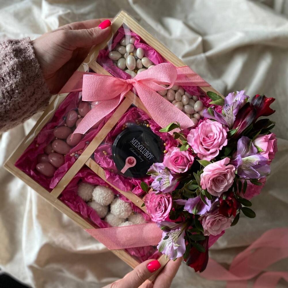 Коробка с нежными цветами для любимой