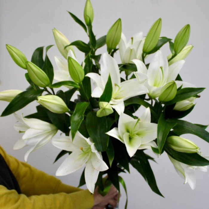 Лента атласная – 1 шт.Лилия белая – 5 шт.