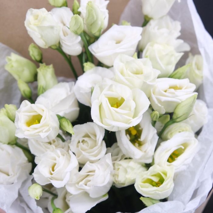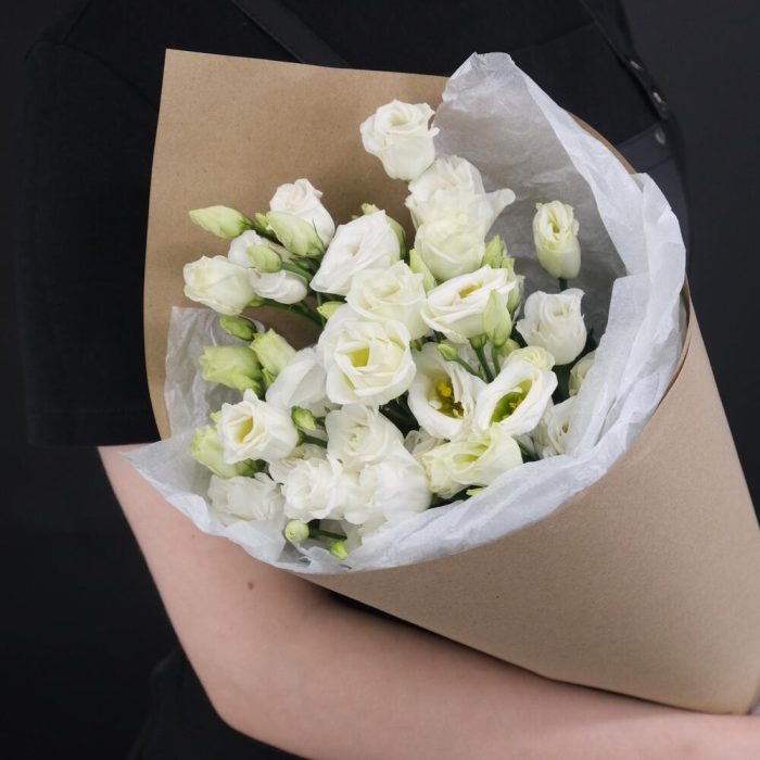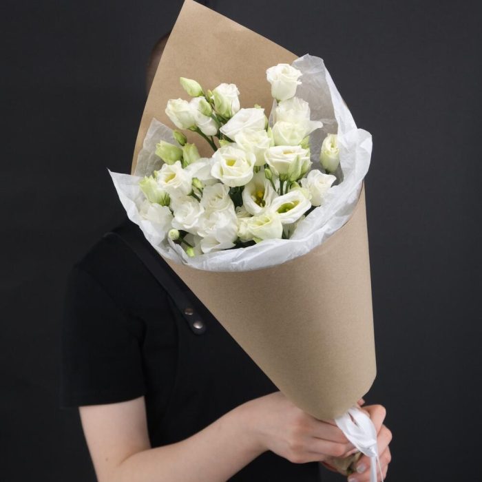 Эустома – 5 шт.Крафтовая упаковка – 1 шт.подкормка для стойкости цветов – 1 шт.