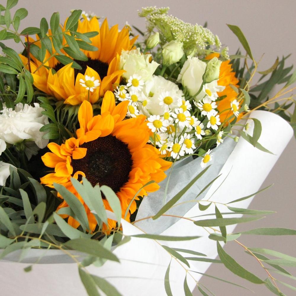 Подсолнухи, ромашки, зонтики и эвкалипт