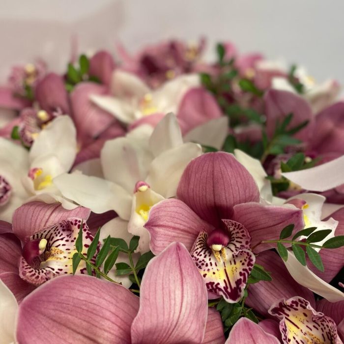 Букет из альстромерии с космическими орхидеями. Букет 253 ALMOND ROSES