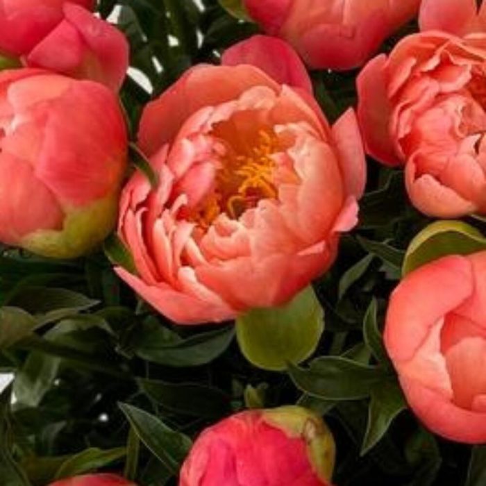 Пион Коралл Шарм (Coral Charm) – 51 шт.Лента атласная – 1 шт.