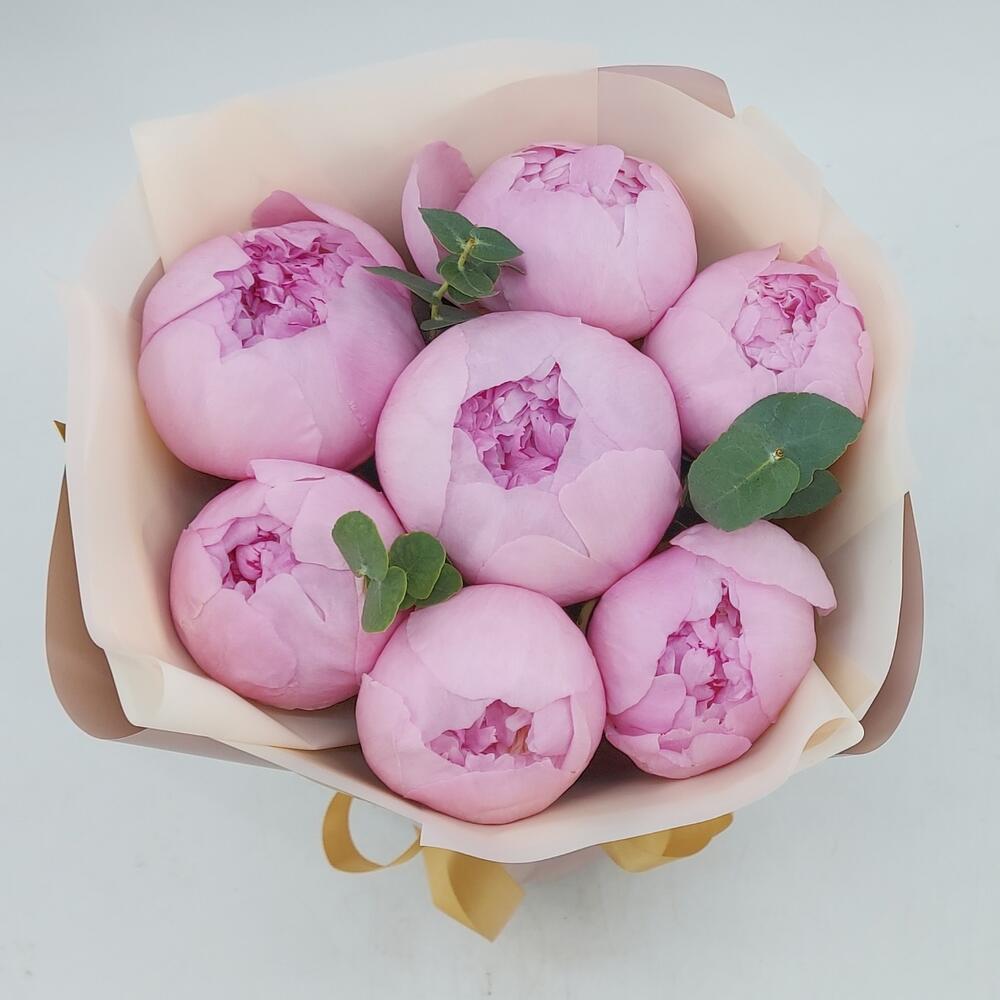 7 пионов с эвкалиптом