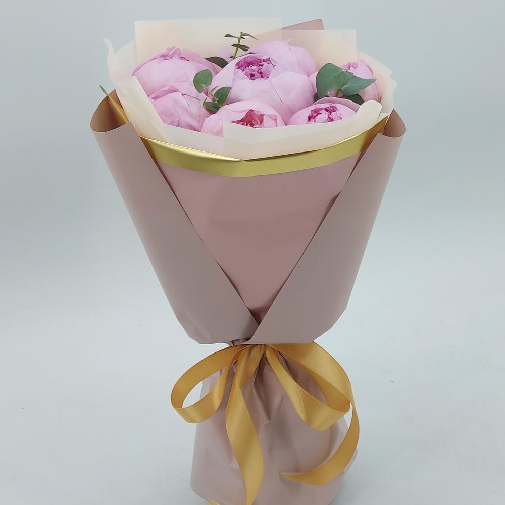 Эвкалипт – 1 шт.Упаковка дизайнерская – 1 шт.пион энджел чикс – 7 шт.