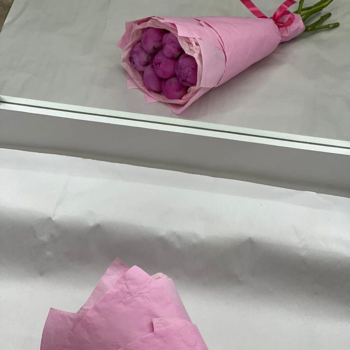 Упаковка – 2 шт.Лента атласная – 1 шт.Пион ярко розовый – 7 шт.