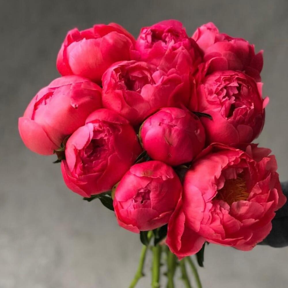 Букет из 11 ярко колларовых пионов
