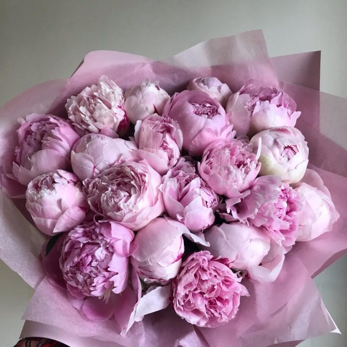 Лента – 2 шт.Упаковка дизайнерская – 4 шт.инструкция по уходу за цветами – 1 шт.пион рене хортес – 21 шт.средство для срезанных цветов – 2 шт.