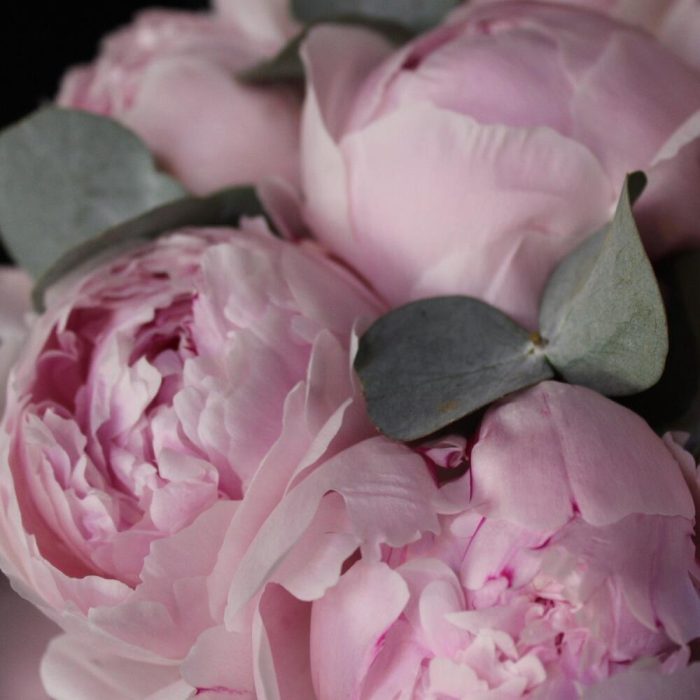 Эвкалипт – 2 шт.Лента атласная – 1 шт.Шляпная коробка – 1 шт.Пион Сара Бернар – 11 шт.Пленка матовая – 1 шт.Оазис флористический – 1 шт.