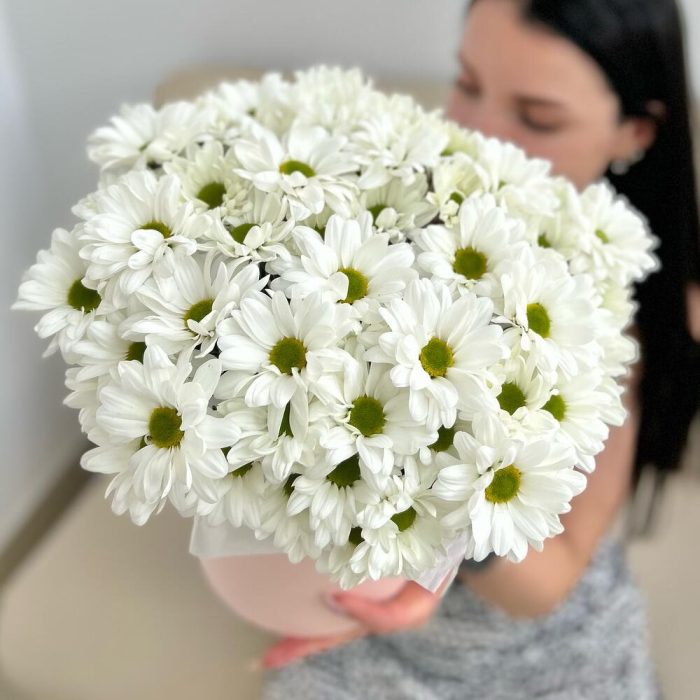 Тишью – 1 шт.Коробка шляпная – 1 шт.Ромашка кустовая – 5 шт.Оазис флористический – 1 шт.