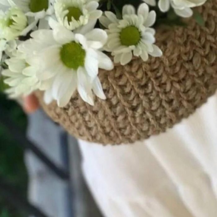 Милейшая корзинка , вязанная ….нежная … да ещё и с ромашками Это идеально , если вы хотите по настоящему удивить