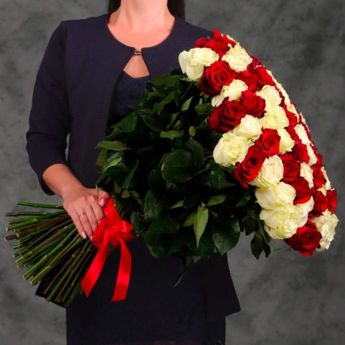 Метки: 101 роза, от 5000 руб, Роза 70 см
