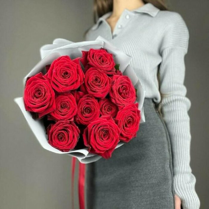 11 красных роз с оформлением Киев