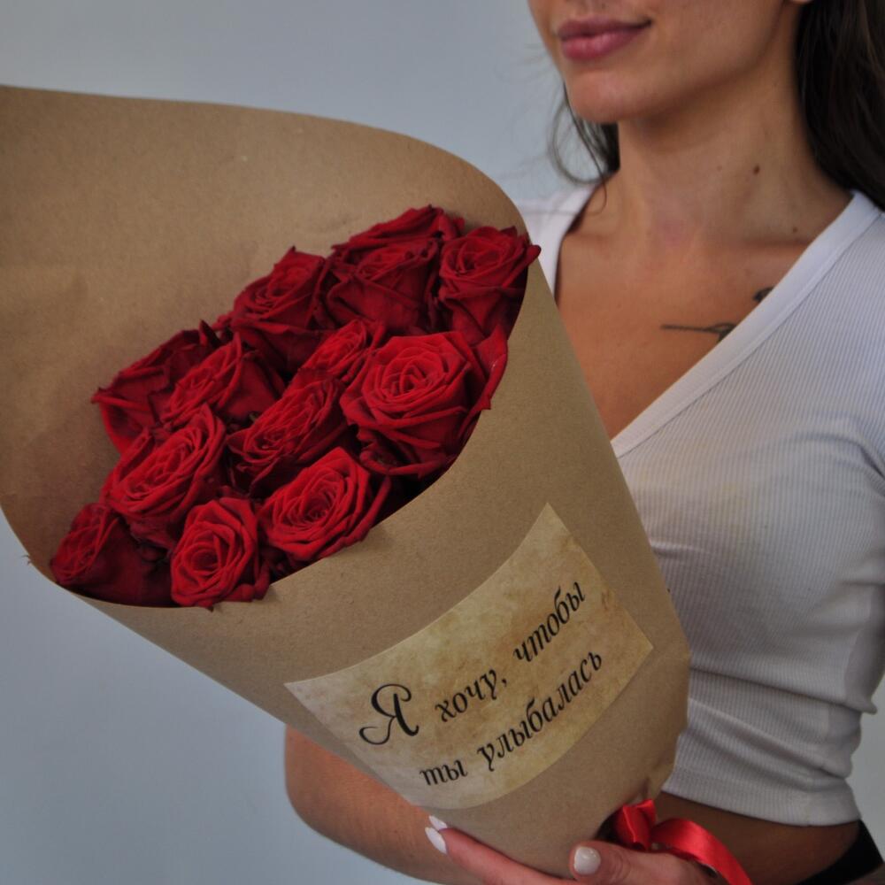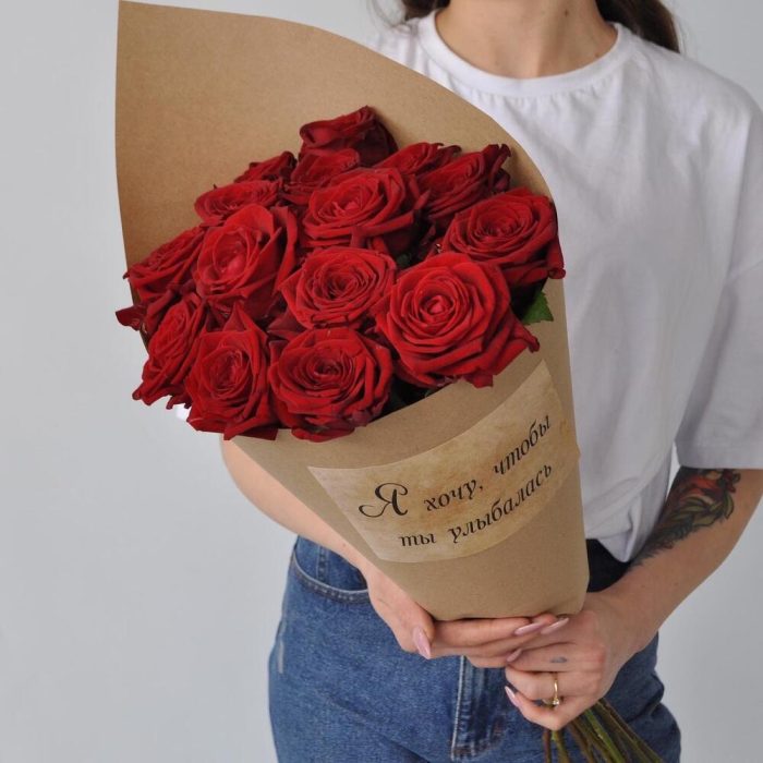 15 роз 60 см в крафте с наклейкой