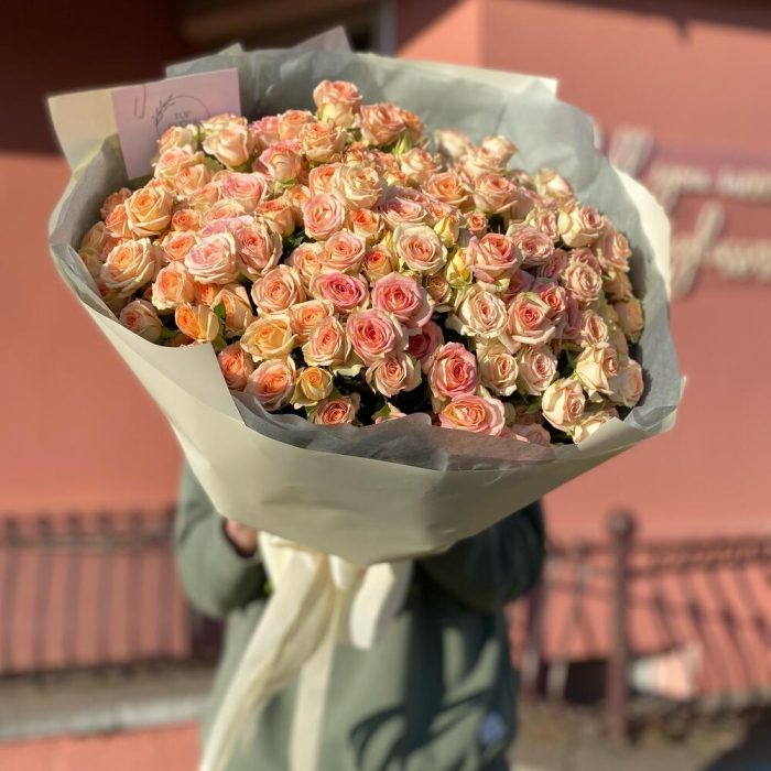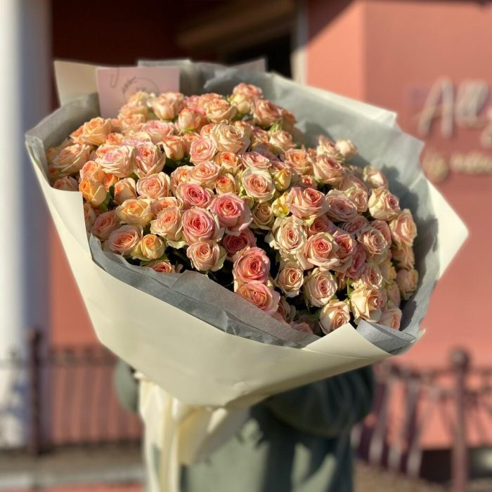Кустовая роза – 25 шт. Тишью – 1 шт. Дизайнерская упаковка – 1 шт.