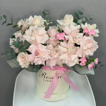 Очаровательная композиция с голландскими розами в брендовой коробке идеальный вариант подарка для ваших близких. Цвет роз можно выбрать написав нам в чат внимание, цвет коробки может отличаться