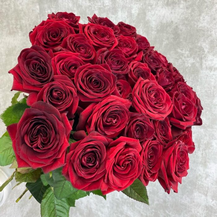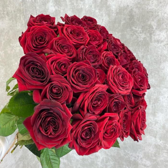 Роза 70 см – 35 шт.Атласная лента – 1 шт.