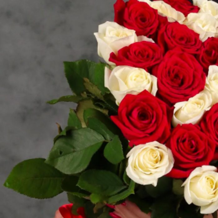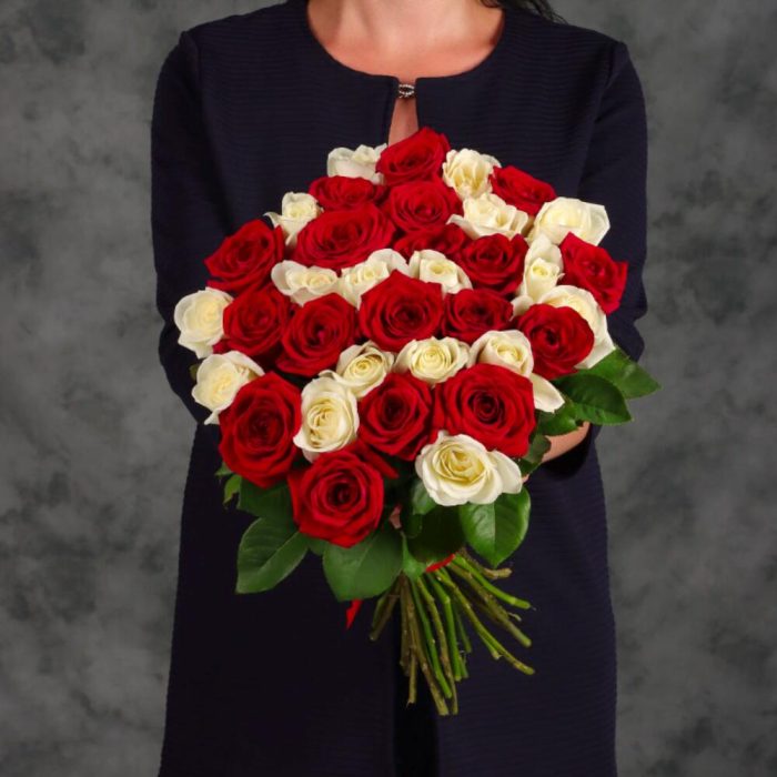 Букет из 35 красных и белых роз.