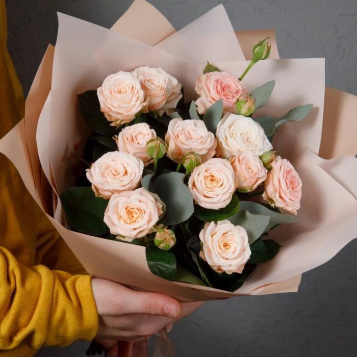 Категории: Кустовые розы, Пионовидные розы, Розы, Эвкалипт