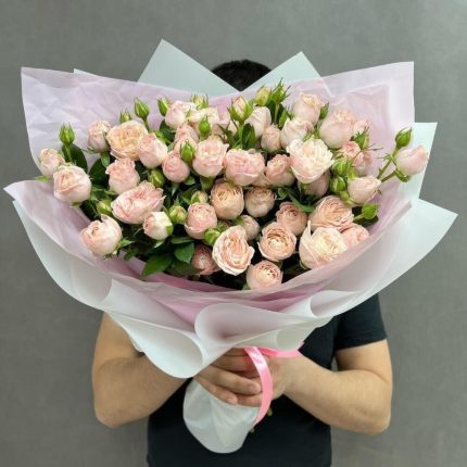 Нежный букет из пионовидных роз в дизайнерской упаковке .
