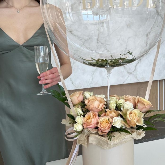“Атлас☁️” – цветочная композиция с зефиром в деревянном ящике