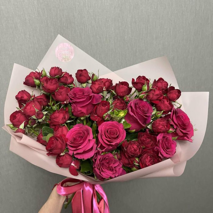 Наш авторский букет микс представляет собой уникальную композицию из одноголовых и кустовых роз, которая будет прекрасным подарком для любого особого случая или просто для того, чтобы порадовать близкого человека.
