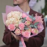 Авторский букет с пионовидными розами Свон грейс и гвоздиками