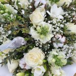 Гипсофила – 4 шт.Эвкалипт – 5 шт.Зелень – 25 шт.Роза белая – 19 шт.Фрезия белая – 10 шт.Упаковка дизайнерская – 5 шт.Львиный зев – 10 шт.Птичка декоративная – 1 шт.Хлопок натуральный – 5 шт.