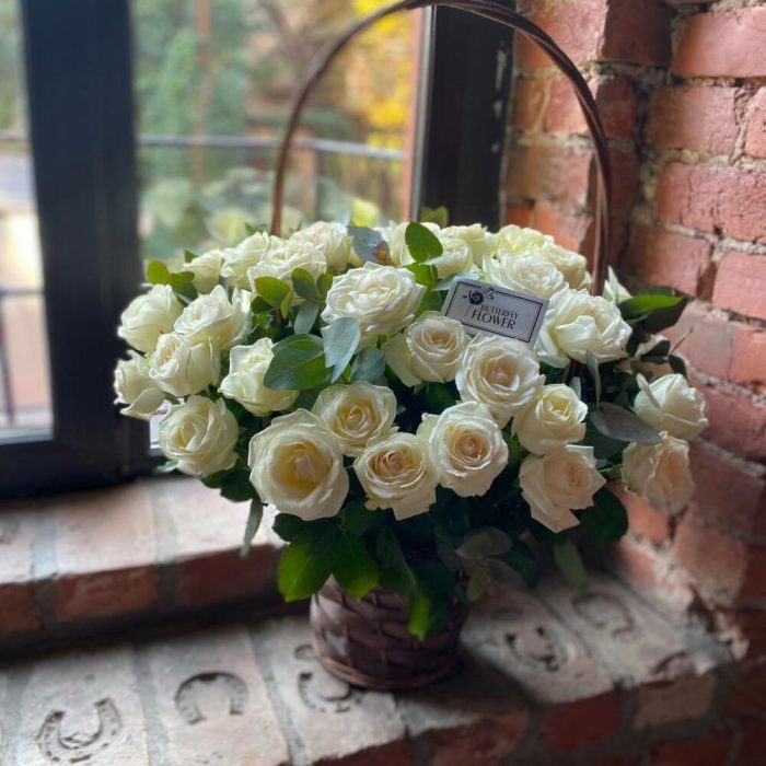 Метки: 51 роза, от 5000 руб, цветы в корзине