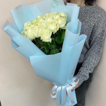 Роза украинская – 17 шт. Упаковка калька флористическая – 1 шт.