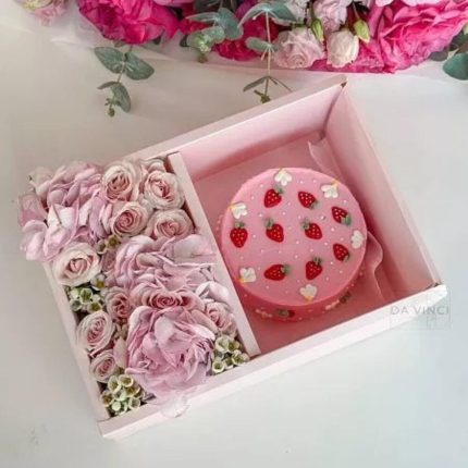 “Атлас☁️” – цветочная композиция с зефиром в деревянном ящике