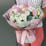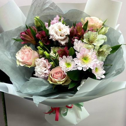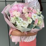 Букет из пионовидных роз, эустом и альстромерий
