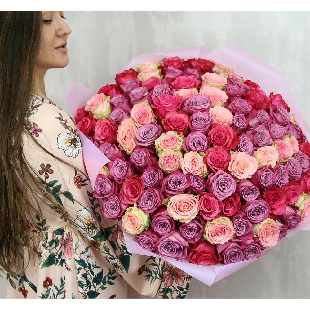 Букет из 101 premium роз 40-50 см микс (Эквадор) в упаковке
