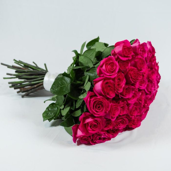 Роза эквадор розовая – 101 шт.Пленка прозрачная – 1 шт.Лента атласная – 1 шт.
