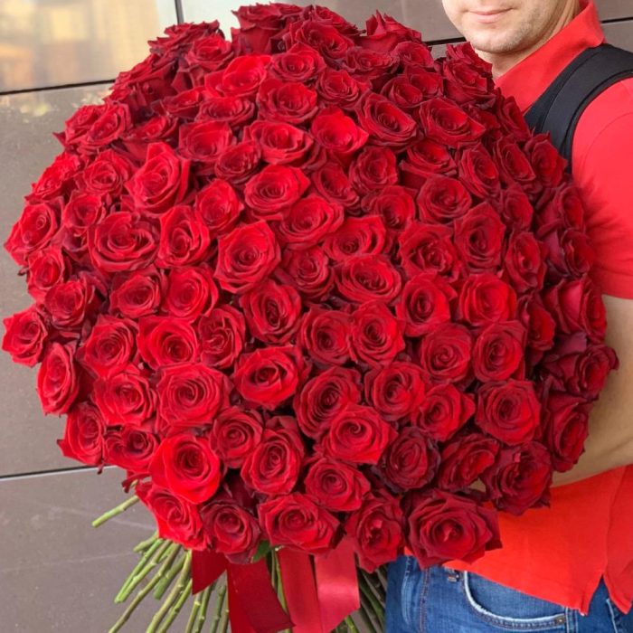 Роза Эквадор Премиум – 101 шт.Лента атласная – 5 шт.