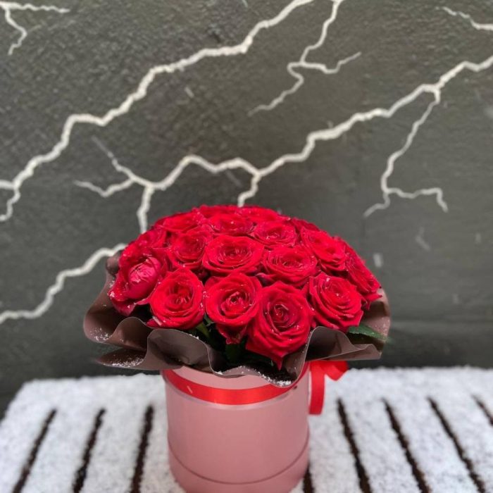 БУКЕТ ИЗ 25 РОЗ В ШЛЯПНОЙ КОРОБКЕ «БЛАГОРОДСТВО»