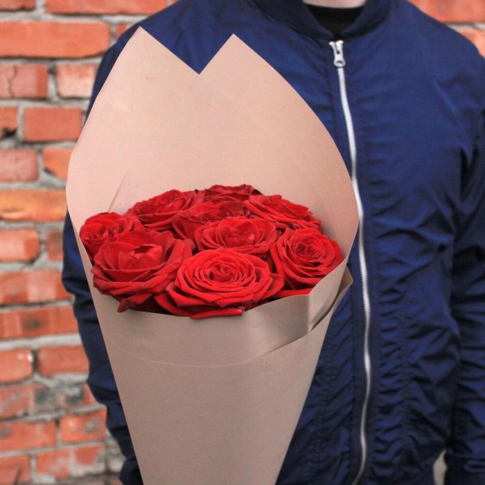 Букет из 9 красных роз в стильной упаковке