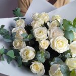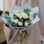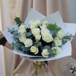 Букет из белых роз и эвкалипта