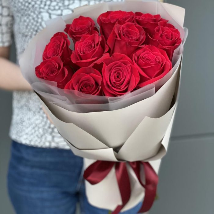 Метки: 11 роз, Красные розы, от 2000 до 3000 руб, Роза 50 см