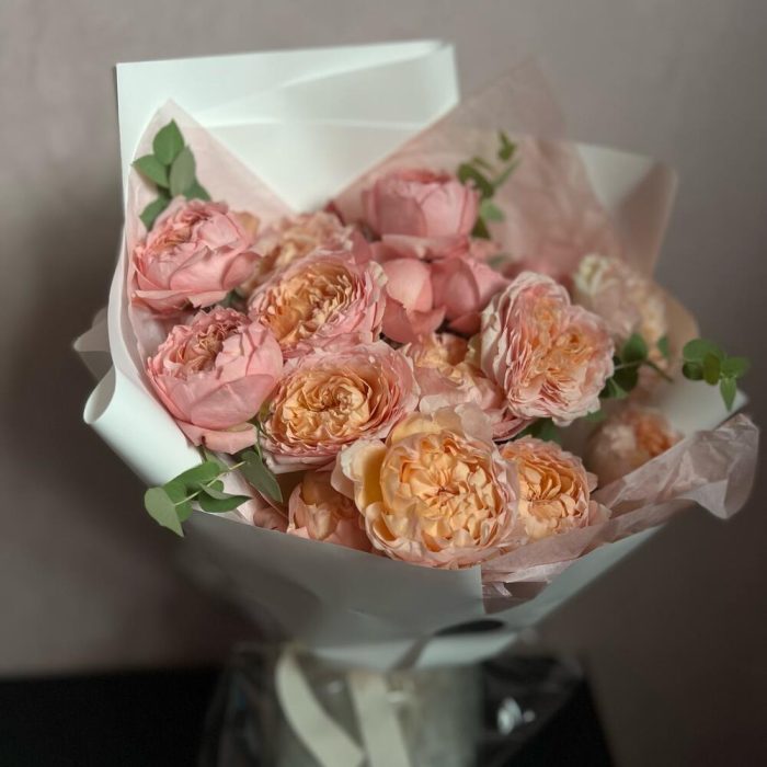 Букет из кустовой пион розы с эвкалиптом (СБ 001)