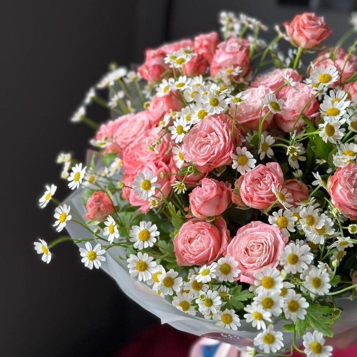 Букет из кустовой розы Бомбастик и Ромашки Матрикарии