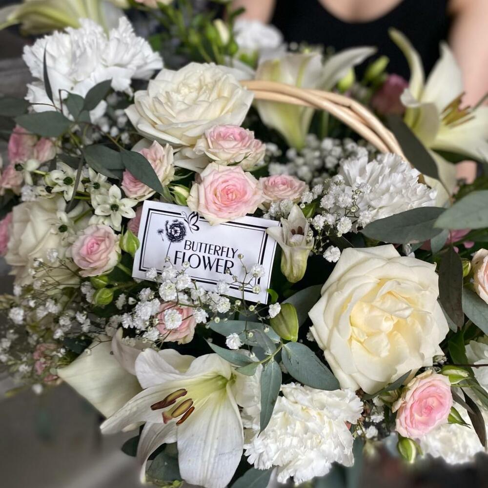 Метки: от 5000 руб, цветы в корзине