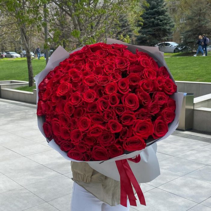 Классический букет из 101 красной розы в эксклюзивном оформлении