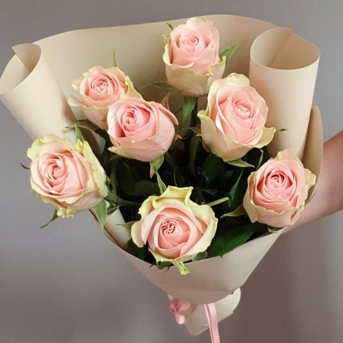 Упаковка – 2 шт.Лента атласная – 1 шт.роза фруттето – 7 шт.