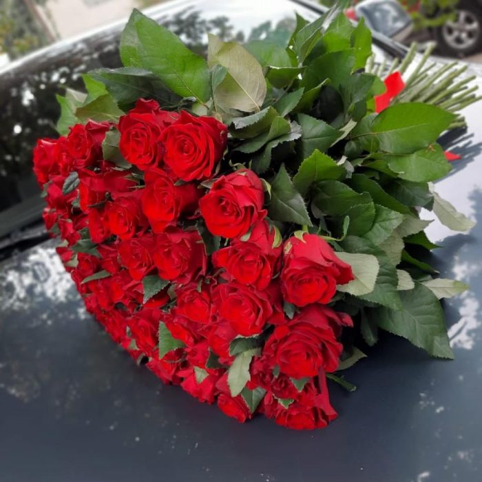 красные розы 60 см – 51 шт.