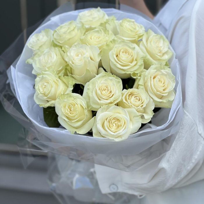 Метки: 15 роз, Белые розы, На свадьбу, от 2000 до 3000 руб, Роза 50 см