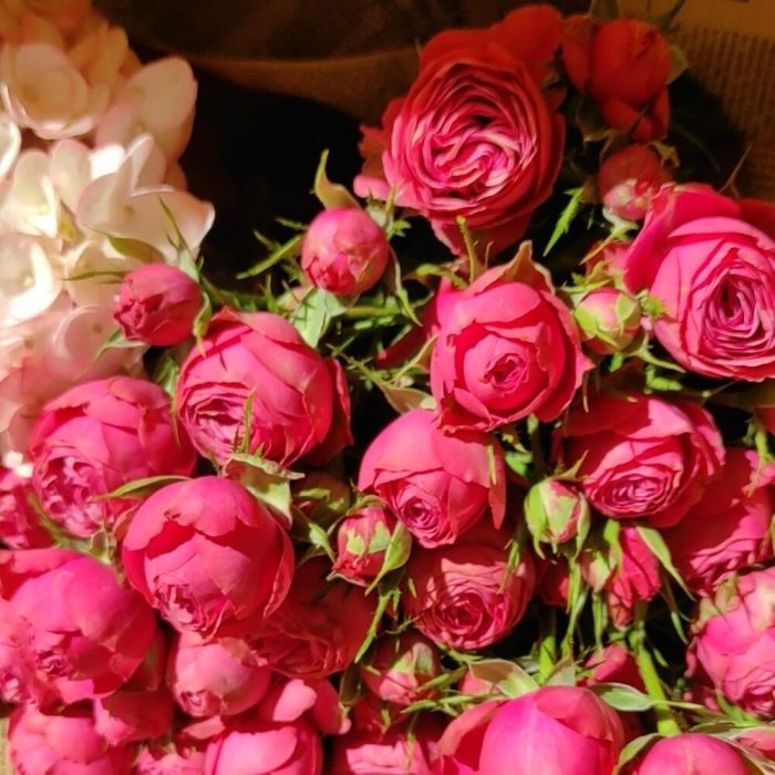 Букет из элитных цветов, в гармоничном сочетании нежного и яркого оттенков. Глядя на него, можно представить малиновый закат и вдохновиться✨